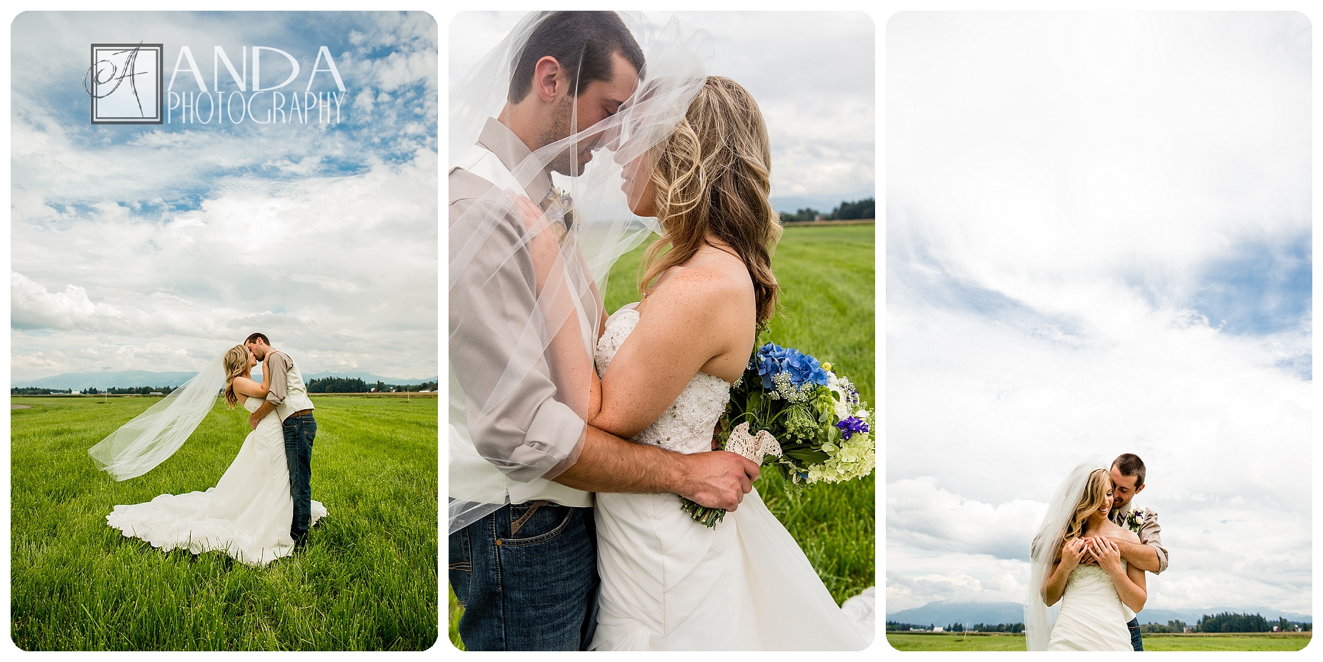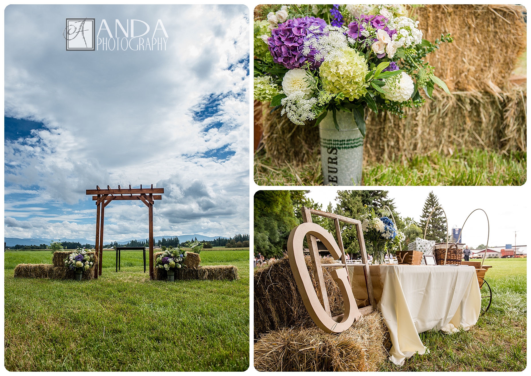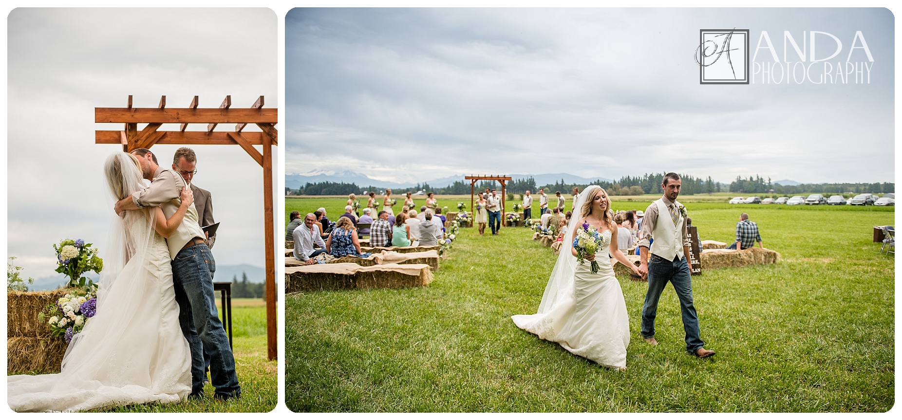 Quiet rustic charm was beautifully achieved in this backyard wedding on a dairy farm in Lynden. Mike & Christie both grew up on dairy farms so the setting was fitting, and even though Mt Baker didn’t show his face until the dancing got underway late in the evening, the view was breathtaking. Mike & Christie have been through a lot this year, seeing as how he lived in Ontario until three weeks ago; but that seems to make this day even sweeter. You can tell right away that these two belong together, right here.