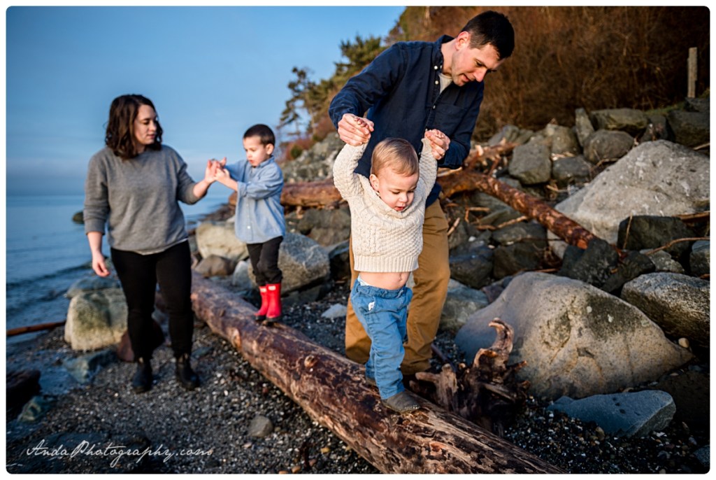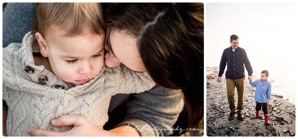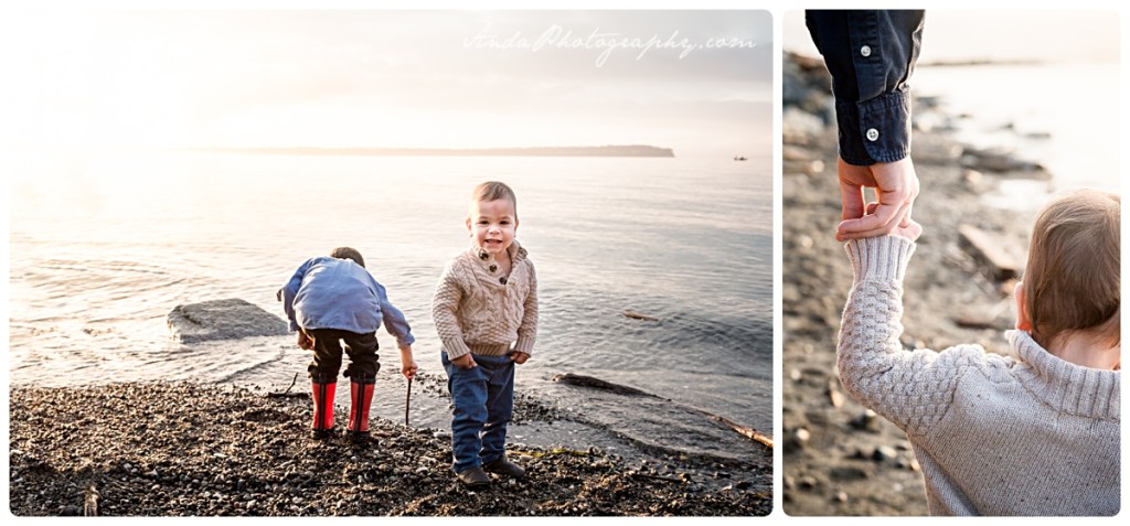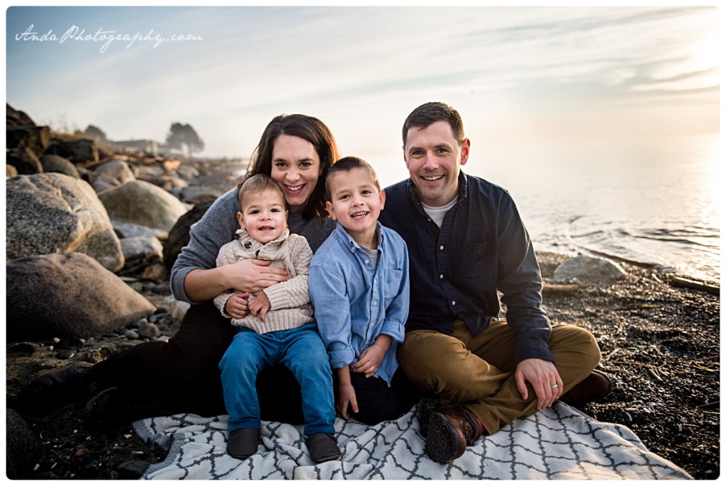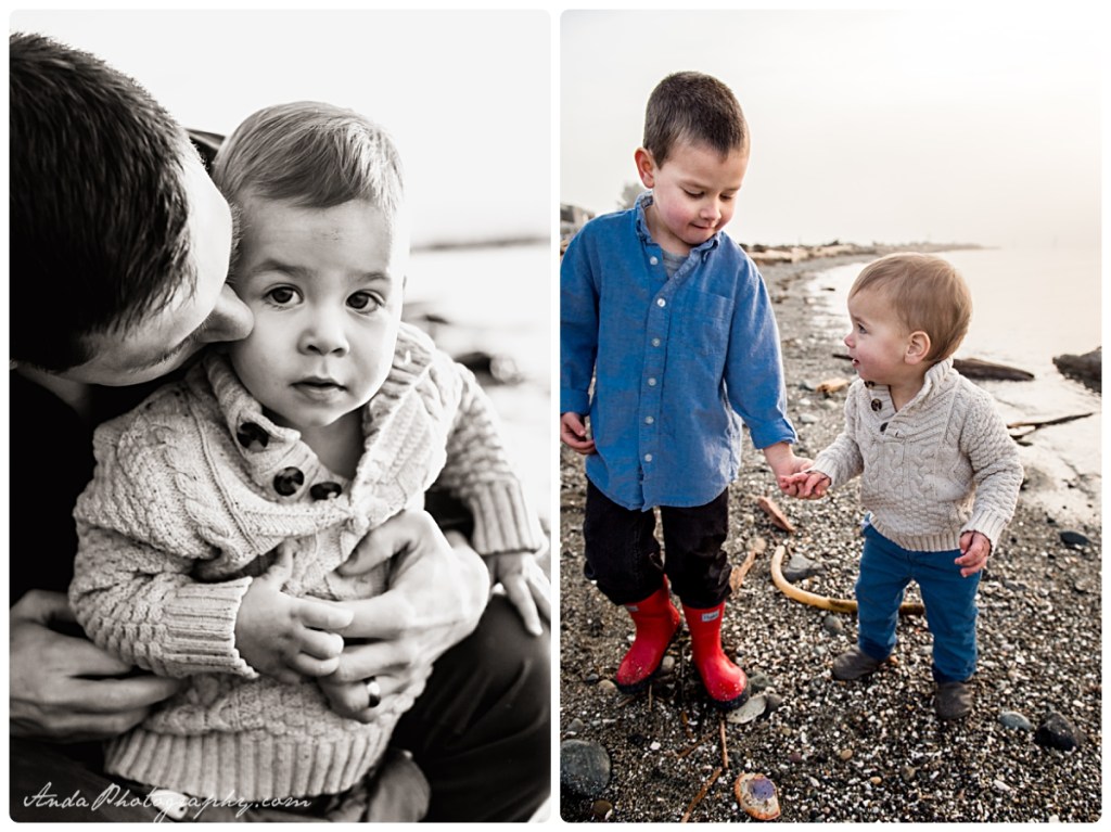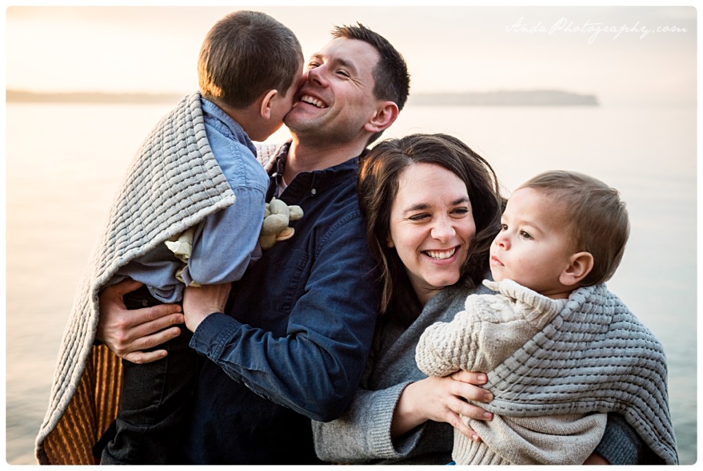Everyone loves the beach. And everyone loves sunrises (well, the idea of them, anyway). Put them together and you get a glorious golden hour family session at a private community beach in Blaine, with this beautiful family. I loved the combination of snuggles and rock throwing that went on with these two cuddly, rambunctious boys!