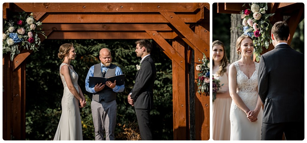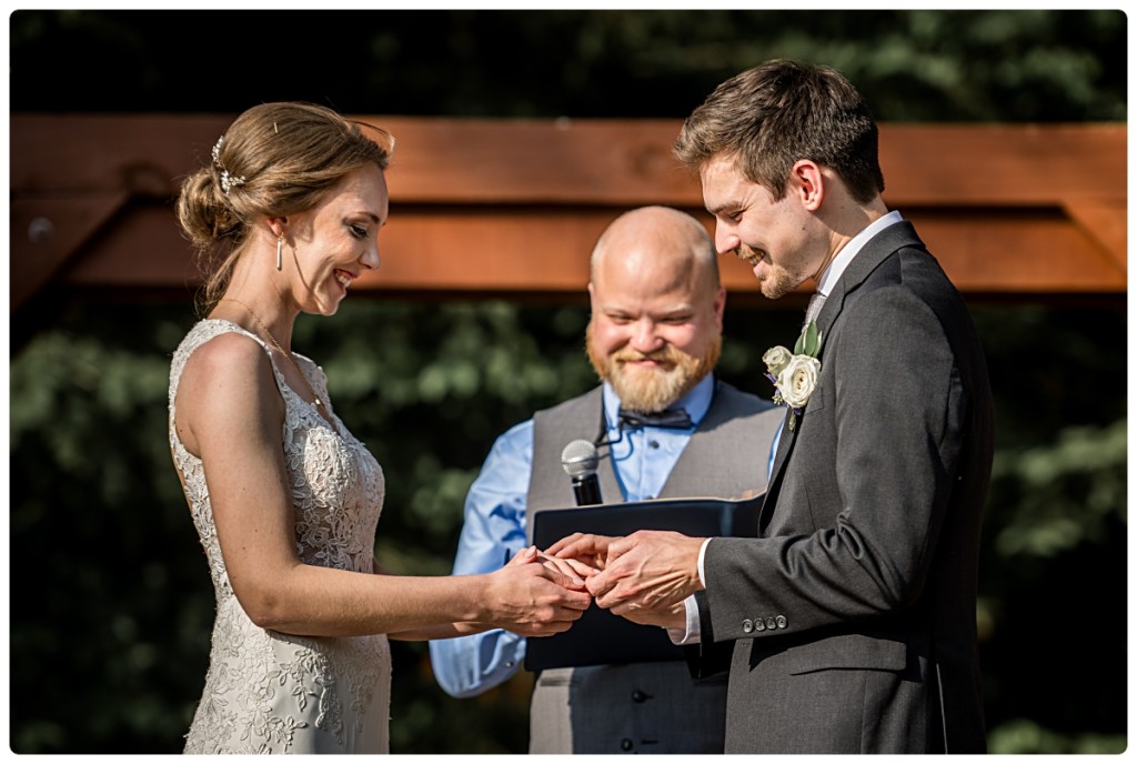 Two of the sweetest, most caring people joined their futures on a clear August day at the gorgeous Nature’s Connection venue in Snohomish. After a private exchange of personal vows, Jesse and Emma joined their proud family and friends for a short ceremony under the awning of elegant overhanging evergreen trees; and afterwards everyone celebrated together with chocolate chip cookies, laughter and dancing until the stars came out. It was a beautiful day with beautiful people!